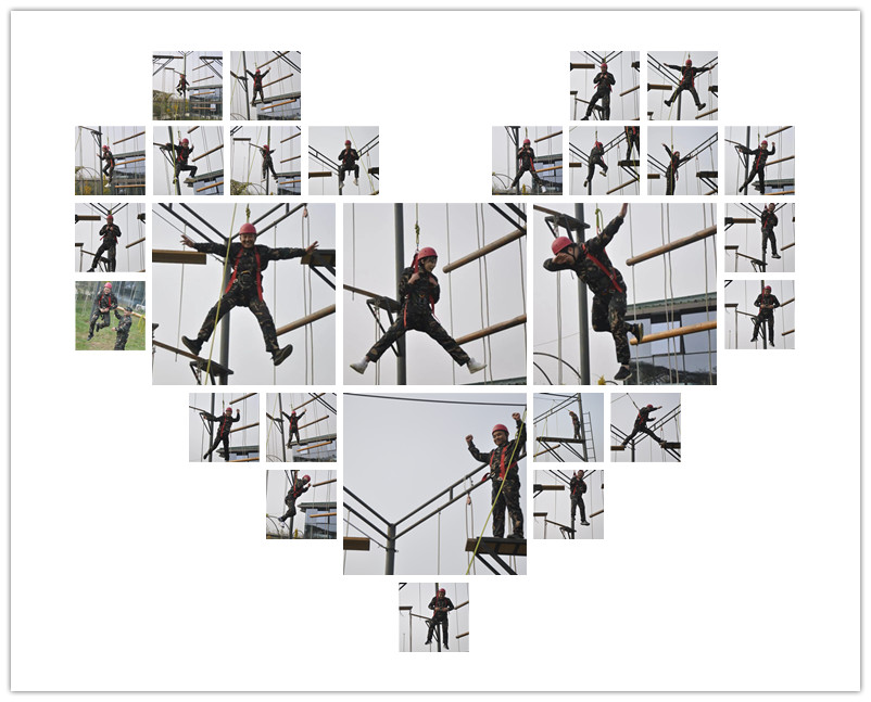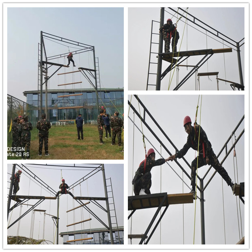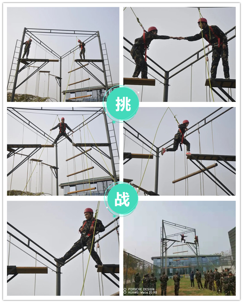 所有成員依次爬上一個8米高的斷橋,根據預設的挑戰目標從一端跳到另一端,突破預設目標,挑戰高難度,此游戲旨在增強個人和團隊的自信心、信任,克服自我設限的心理和恐懼,培養樂于與人相處共事的積極態度和積極向上的心態,體會團隊的鼓舞以及支持。