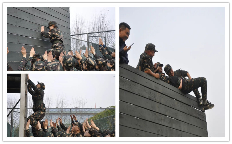 四米二的高墻,沒有任何器械幫助,純粹是團隊力量與團結的體現!此項目是由二戰時期的軍艦上的水手故事發明的,也是真正意義上的活命挑戰——(當時的軍艦下層水手幾乎都是赤身的在船艙底層工作,所以沒有繩子作為工具,軍艦被擊中,即將沉沒,正常出口堵塞,只有爬墻,墻高四米,無法獨立通過。)