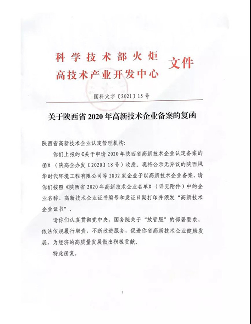 近日,全國高新技術企業認定管理工作領導小組辦公室發布《關于陜西省2020年高新技術企業備案的復函》(國科火字【2021】15號)文件,公示了陜西省2020年高新技術企業認定名單。