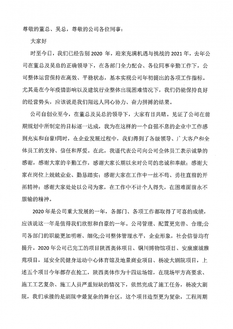 聯歡會開始前,公司副總經理梁森就2020年公司一年的工作進行了總結,并對新的一年作出展望!