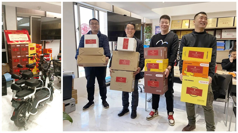 大獎沒中沒關系,公司貼心為每一位員工都準備了新年福利,一張張笑臉收獲滿滿。