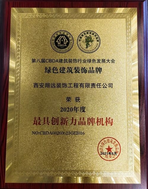 西安翔遠(yuǎn)裝飾工程有限責(zé)任公司作為副會(huì)長(zhǎng)單位應(yīng)邀出席此次大會(huì),憑借創(chuàng)新的市場(chǎng)表現(xiàn),卓越的綜合實(shí)力被授予“第八屆CBDA建筑裝飾行業(yè)綠色發(fā)展大會(huì)最具創(chuàng)新力品牌機(jī)構(gòu)”這一殊榮,獲此榮譽(yù)體現(xiàn)了西安翔遠(yuǎn)在建筑裝飾領(lǐng)域的專注與成就。