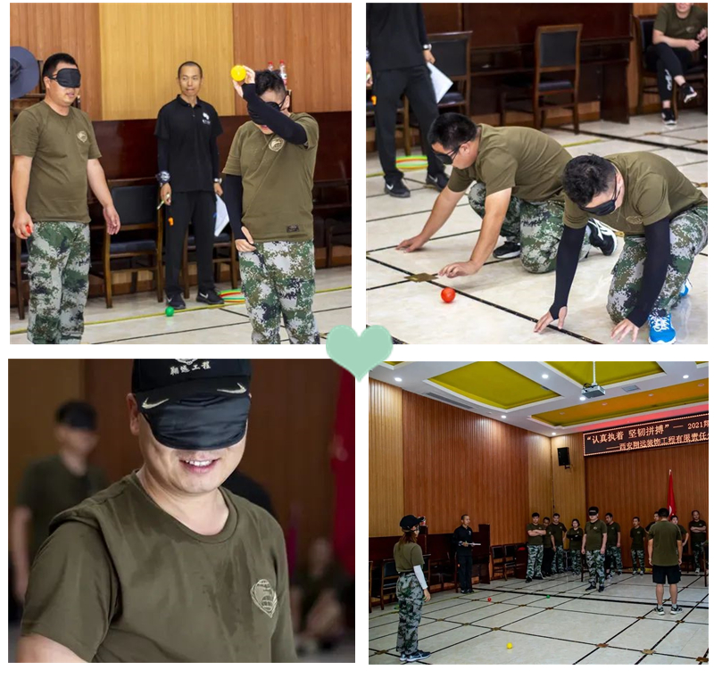 四個隊伍各選一個士兵、一個政委、一個總司令,政委不能講話但能縱觀全局變化,通過手勢向司令下達目標和方向,總司令要充分理解和全面分析政委的意思,向士兵下達準確命令,士兵嚴格服從命令并迅速執行,最終擊敗對方。士兵在工作中是員工的角色要堅決聽從領導的指揮,只有絕對服從命令才能把事情做好,政委代表工作中領導的角色,指明公司的方向,在前線看清事物和市場的動態以做出重大決定,司令是反應領導者的發言,描述藍圖,規劃方案,每一個人的角色都很重要,在無形中是一種溝通。