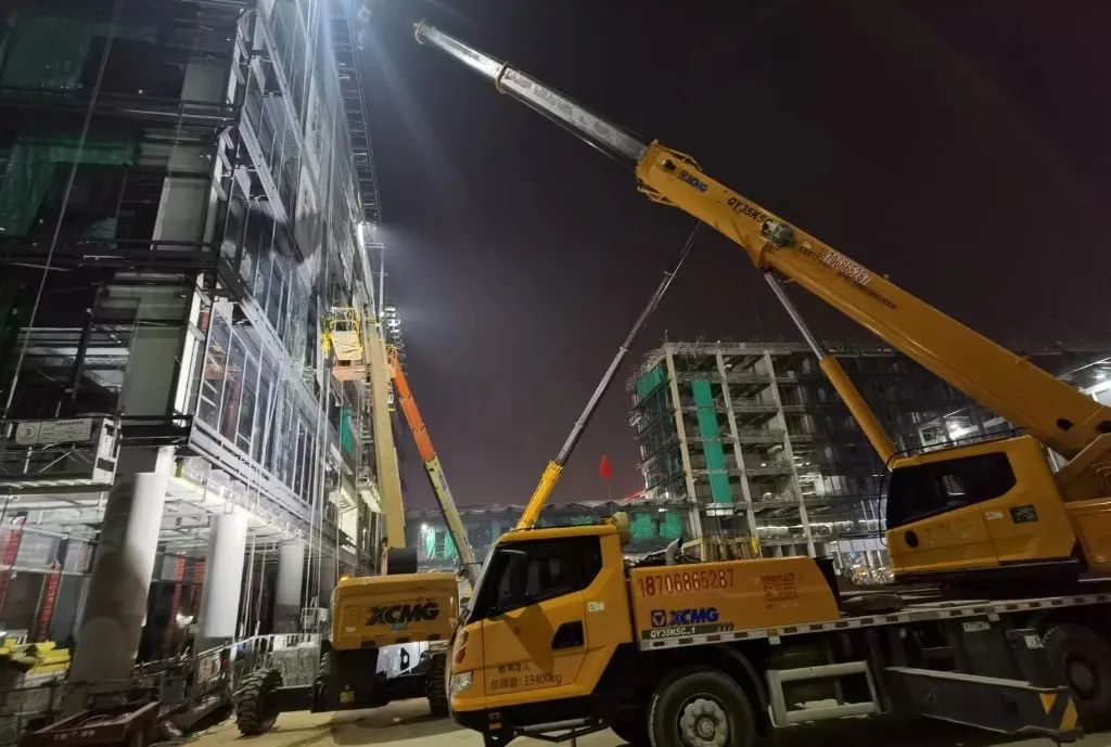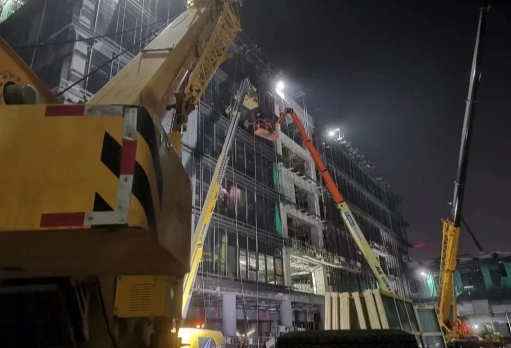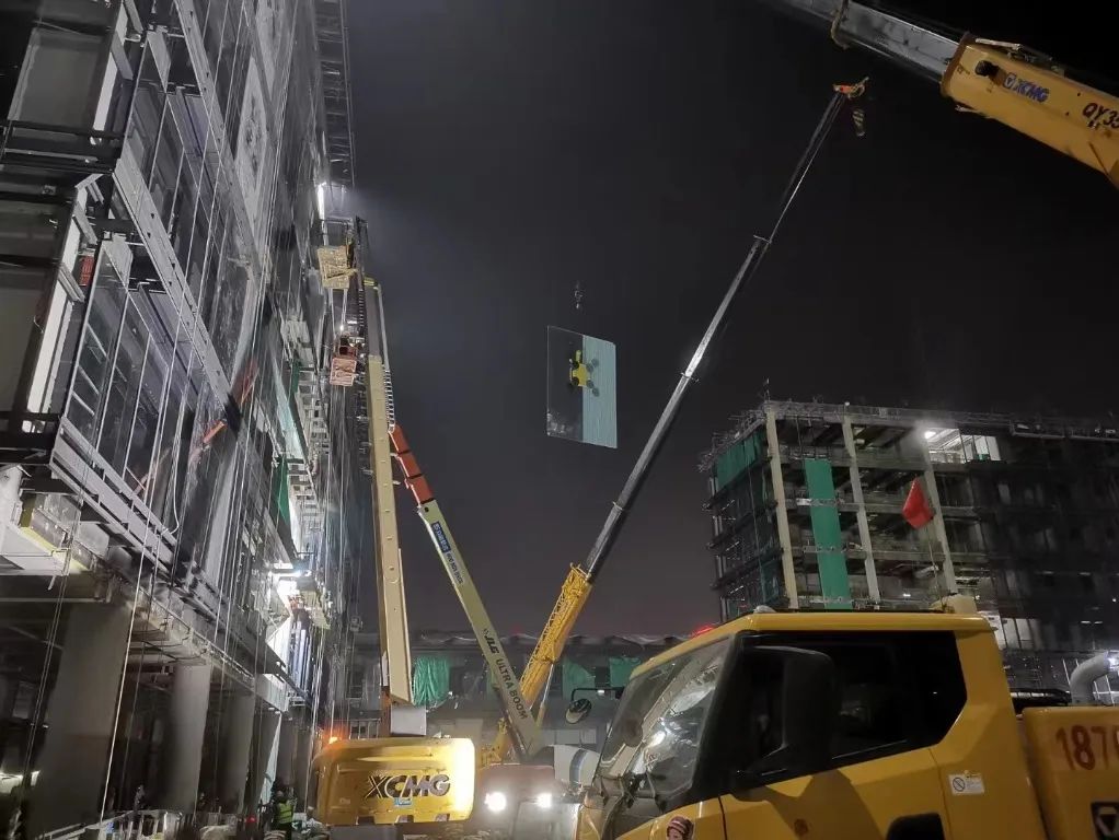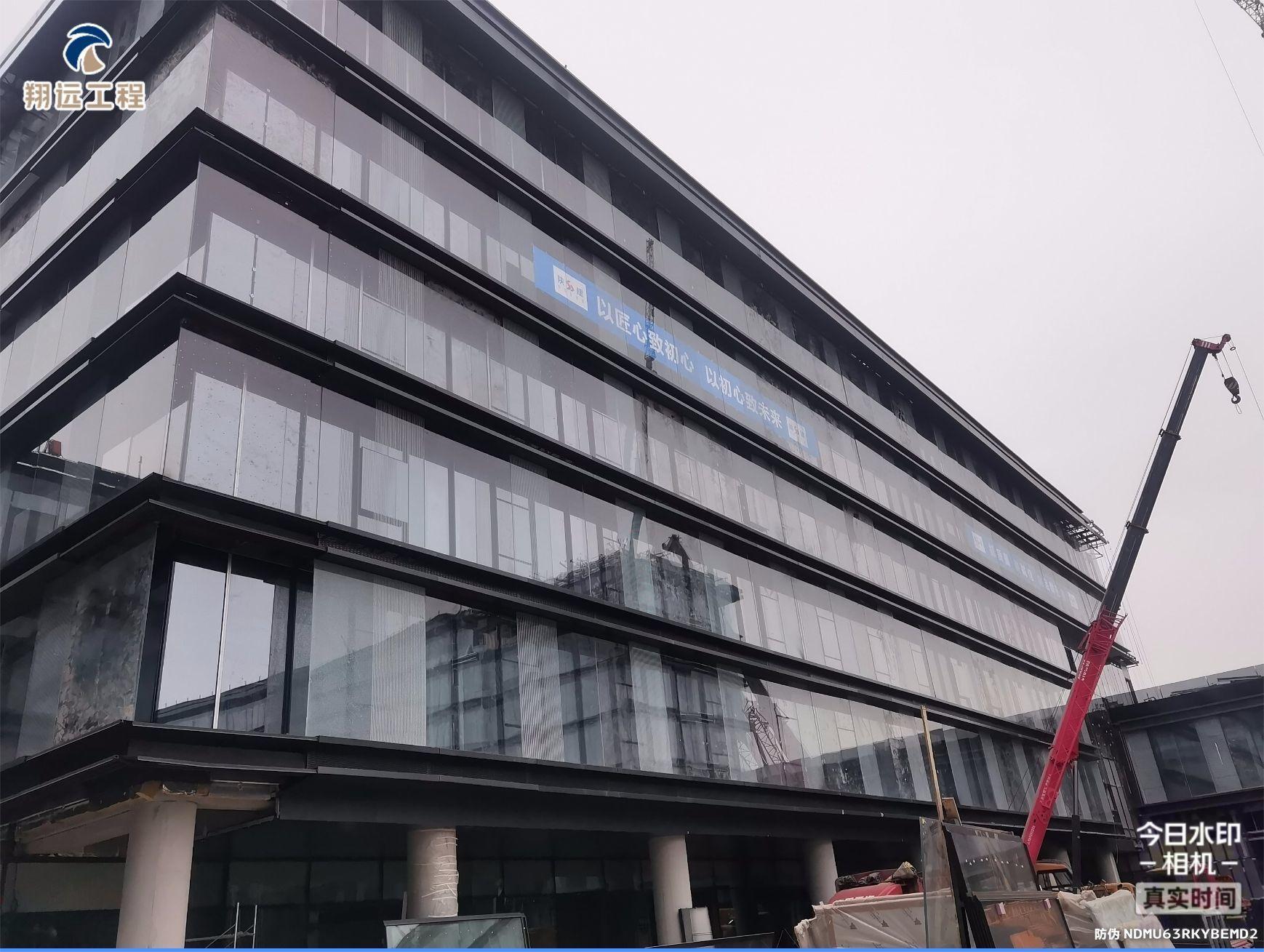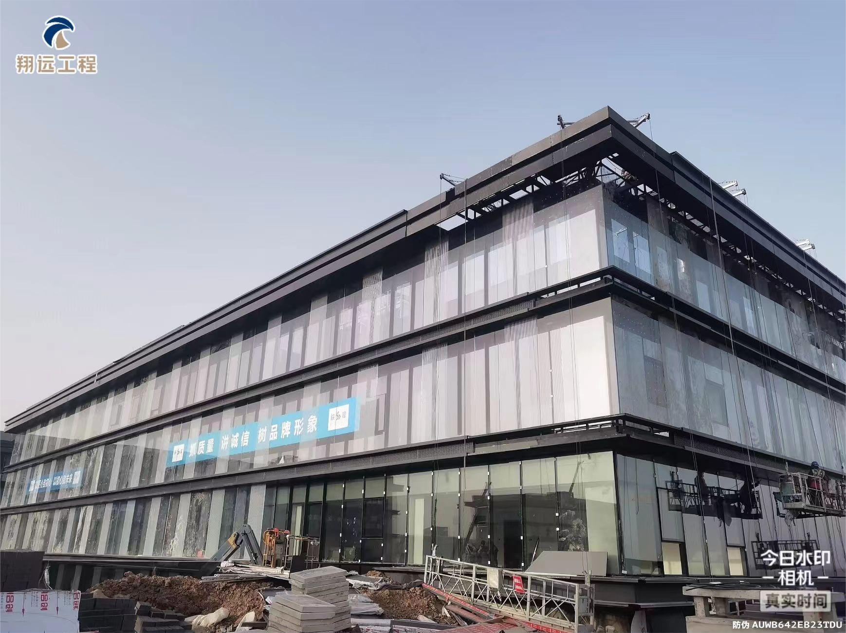 整個施工過程中,公司領導高度重視,多次到施工現場指導工作,本著起步就是沖刺,干就要干第一,干就要干最好,本項目全部選用擁有豐富管理經驗的管理人員及經驗豐富的施工隊伍,該工程采用材料品種多,工藝復雜,僅玻璃就有11種規格,我司采購部發動公司資源,在3天內完成了所有材料供應合同,并在4天內向現場發送100多噸國標定制加工鋼材。專業的人干專業的事,翔遠團隊一絲不茍,亮劍精神伴隨。