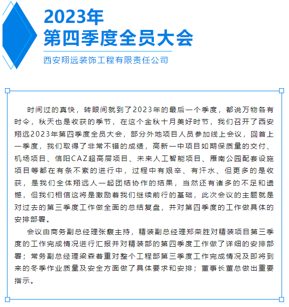 第四季度滿懷激情,開(kāi)啟年末攻堅(jiān)戰(zhàn)||暨西安翔遠(yuǎn)2023年第四季度大會(huì)圓滿召開(kāi)